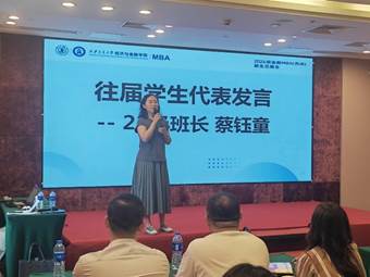 2022级MBA(数字金融方向)班长蔡钰童学姐作为学生代表向新同学们送出了祝福和鼓励,并对即将成立的2024级班委提出了建议和期盼。