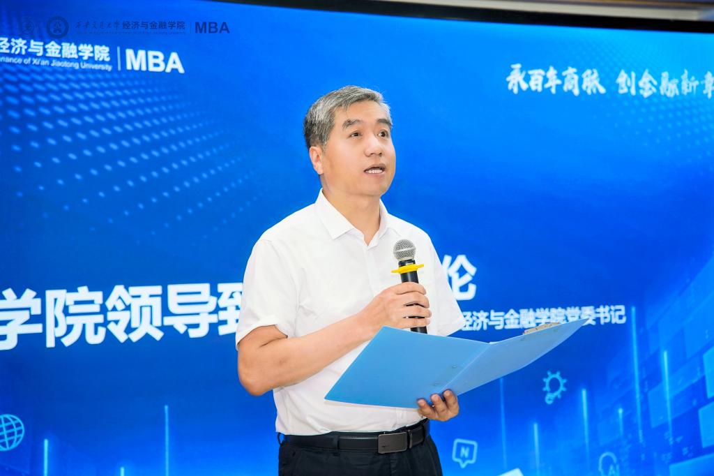 见面会上,西安交通大学经济与金融学院党委书记周建伦向2025级新生表达了诚挚祝贺与热烈欢迎。他寄语学子们通过金融MBA学习提升认知、锻炼能力、收获成长,成长为兼具金融智慧与社会责任的新时代商业领袖。