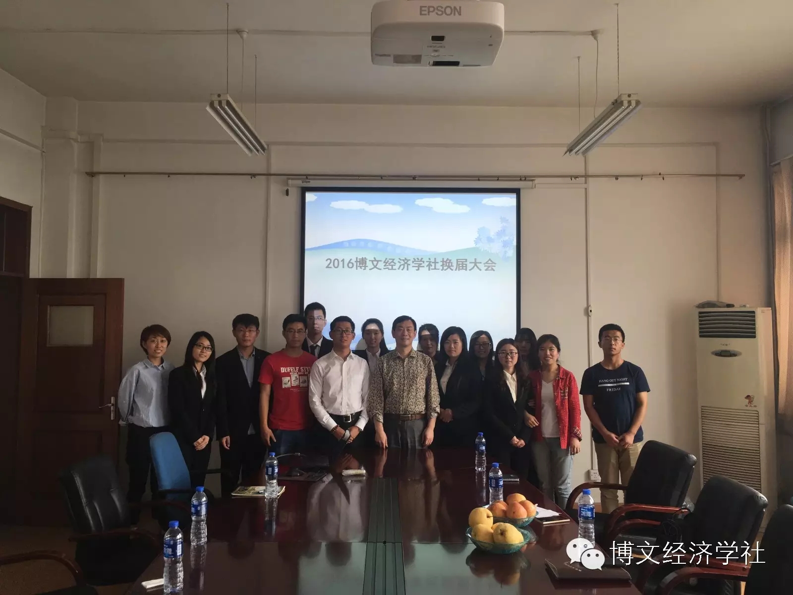 5月6日,博文经济学社主席团换届活动在主楼721举行,王平老师参加了换届大会,并发表总结讲话。竞选活动在付锦程主席总结工作之后拉开序幕,竞选的格调也在不同的风格之间不停地变换:张慧颖同学的干练、夏冷同学的细心冷静、齐欢乐同学的灵动、李静阳同学的走心、刘家齐同学的活泼、王仲宁同学的严肃认真、张登魁同学的踏实勤奋、冯欣怡同学的优雅、惠虎同学的充沛情感、胡耀平同学的诗意······