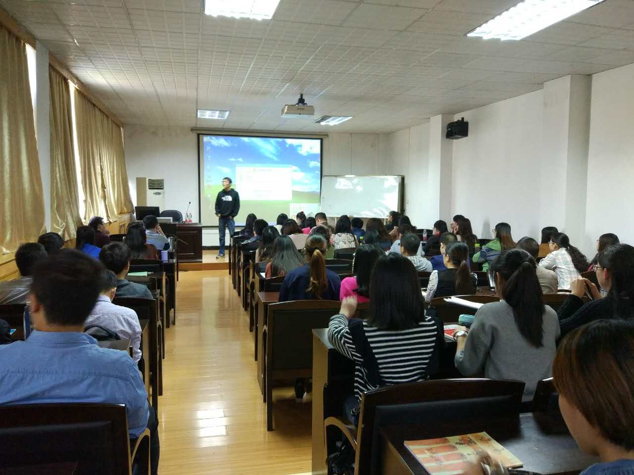 2016年10月17日下午,由博文经济学社主办的题为“90后副教授教你论文写作”的学术沙龙顺利举办。本次沙龙特邀我院优秀青年教师李江龙副教授和刘泓汛讲师,为同学们讲述研究生科研生涯的心路历程,分享科研论文写作方法。经济学院近70名研究生参加了交流会。交流会由博文经济学社杨福川同学主持。