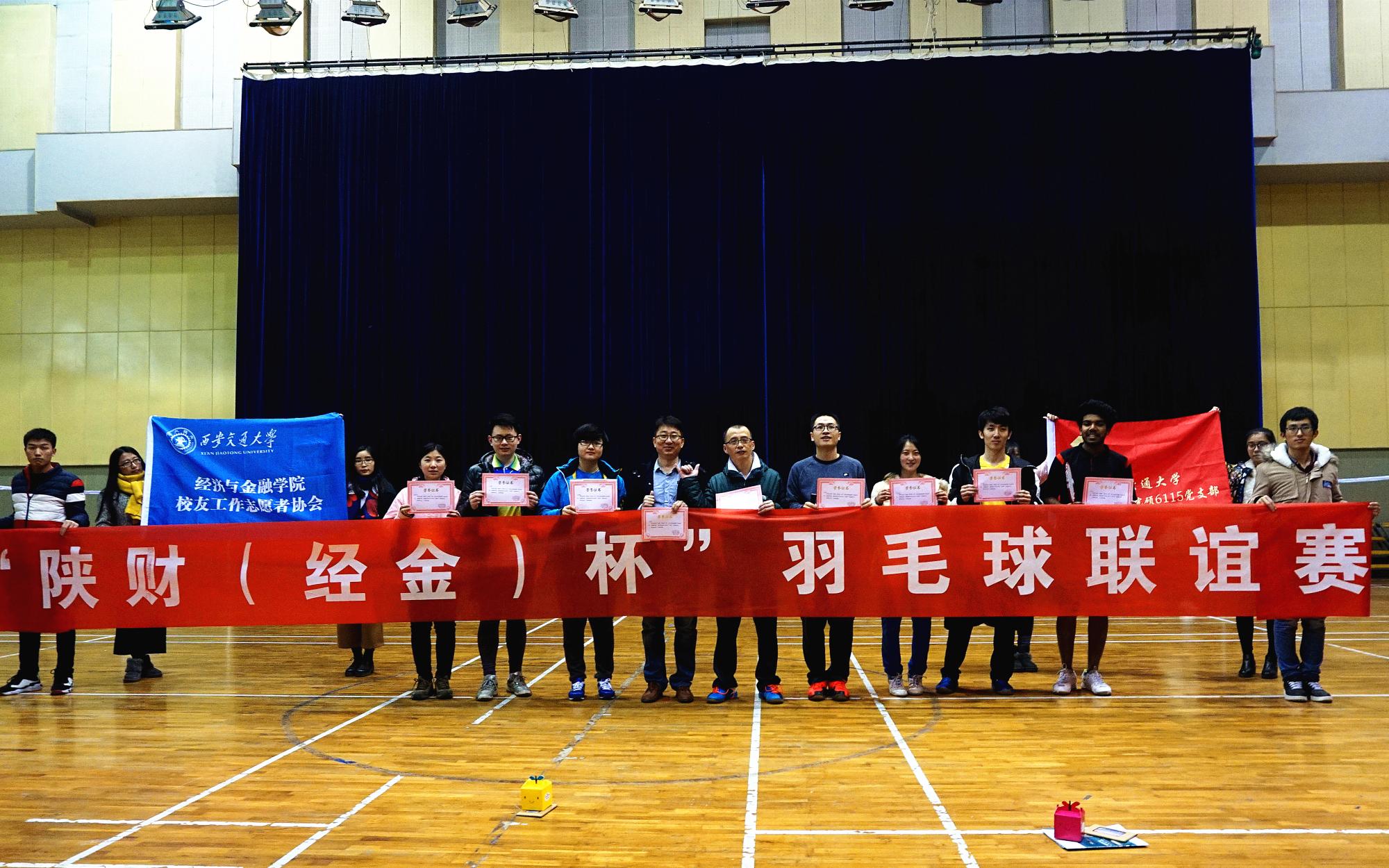 2016年12月11日上午,首届“陕财(经金)杯”羽毛球联谊赛在雁塔校区生活区505体育馆顺利举行。本次比赛由西安交大经金学院校友办、西安交大陕财经金校友会、西安交大金融EDP校友会联合主办,西安交大经金校友志愿者协会、西安交大经金学院研究生会、经济与金融学院6115党支部联合承办,并得到西安空之净环境科技有限公司的大力支持。
