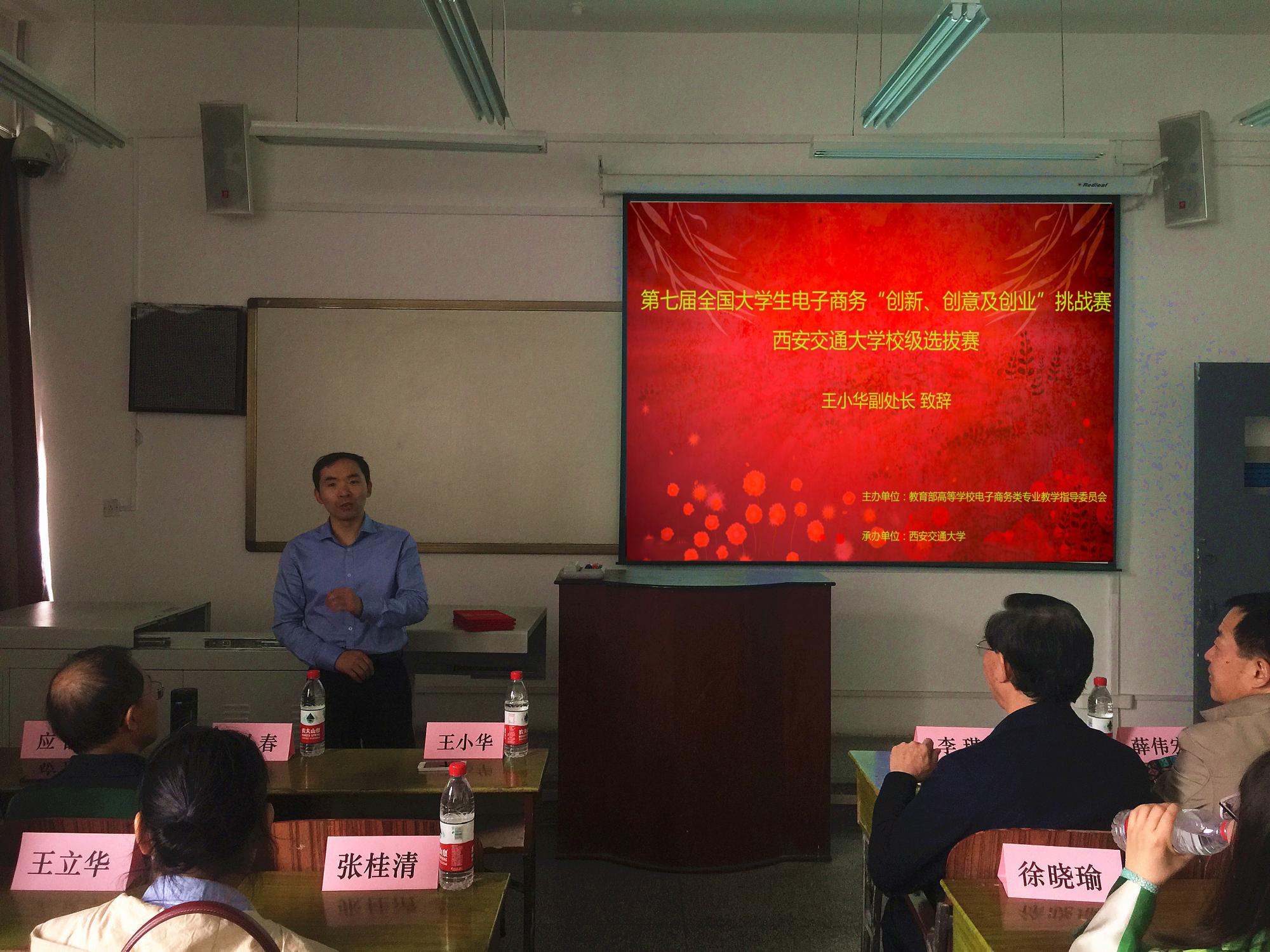 2017年5月7日,由教育部高等学校电子商务类专业教学指导委员会主办,西安交通大学承办的第七届全国大学生电子商务“创新、创意及创业”挑战赛西安交通大学校赛在西安交通大学经济与金融学院举行。本次大赛根据教育部、财政部(教高函<2010>13号)文件精神,全国大学生电子商务“创新、创意及创业”挑战赛是激发大学生兴趣与潜能,培养大学生创新意识、创意思维、创业能力以及团队协同实战精神的学科性竞赛。第七届三创赛采取主题赛方式,强调理论与实践相结合,校企合作办大赛,以三农电子商务、电子商务物流、移动电子商务、跨境电子商务、互联网金融、校园电子商务、旅游电子商务、康养电子商务及其他类电子商务等为主题进行主题竞赛。