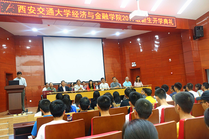 9月8日晚,经金学院2017级新生开学典礼在财经校区东配三报告厅隆重举行。学院领导班子、启德书院与宗濂书院领导、各系主任、支部书记、院办正副主任、教学秘书、系秘书、新生班主任以及全体2017级新生共约400余人参加了开学典礼。学院党委副书记周建伦主持典礼。