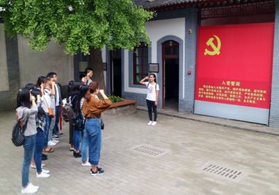 “八办”屋前,银杏树下,研会一行重温入党誓词。十二句话,句句千钧,凝聚着党对党员的基本要求,展现了党员对党组织和党的事业承诺的政治责任。重温入党誓词不仅仅是重温一种形式,更是重温入党时的决心和信念。在这个无数革命先烈抛洒热血的红色堡垒中,党旗下的誓言更能让我们热血沸腾,充满斗志,更能感召我们开拓进取,果砺前行。