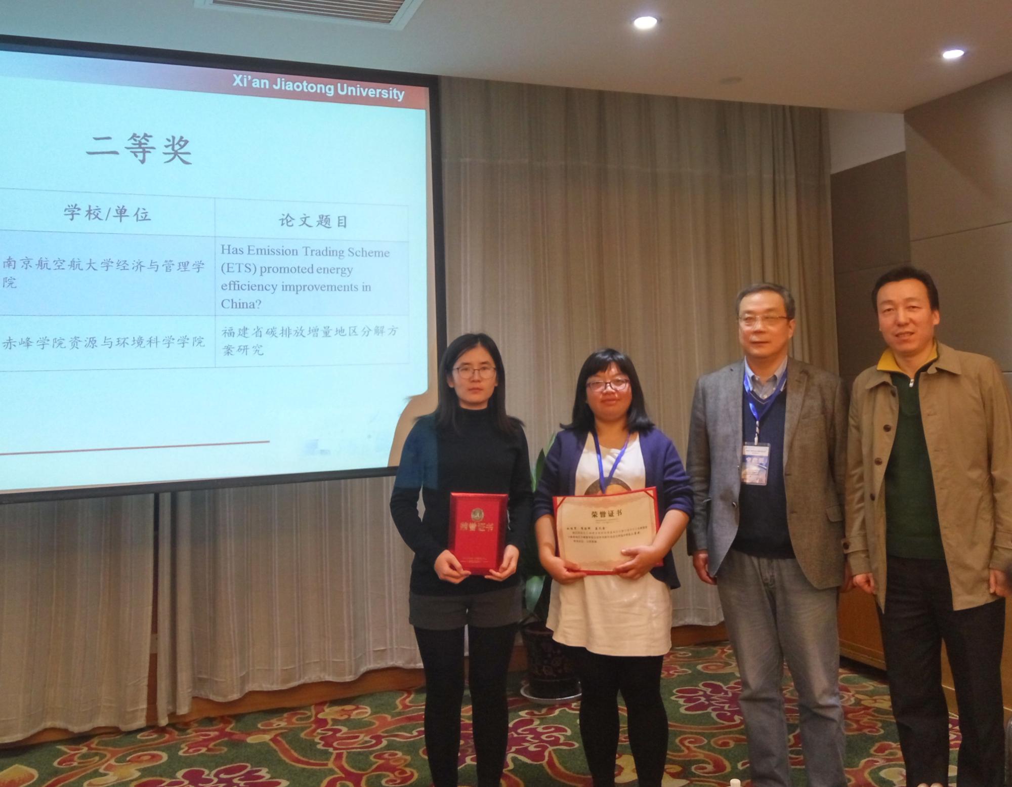 为认真贯彻落实党的十九大会议精神,按照国务院《“十三五”控制温室气体排放工作方案》(国发〔2016〕61号)既定安排,以分解由省级政府管理延伸到市县级为路径,推进省级政府对市县级政府年度碳强度(单位GDP二氧化碳排放)下降率目标完成情况的评估、考核工作,2017年11月17日,“碳强度下降率地区分解暨考核办法学术研讨会”在西安市成功举办。陕西省发展和改革委气候处续大康处长、陕西省统计局王琦总经济师、西安交通大学社会科学处张日鹏副处长和经济与金融学院院长助理赵春艳老师在开幕式上致辞。沈阳工业大学副校长李三喜教授主持了优秀论文颁奖仪式。