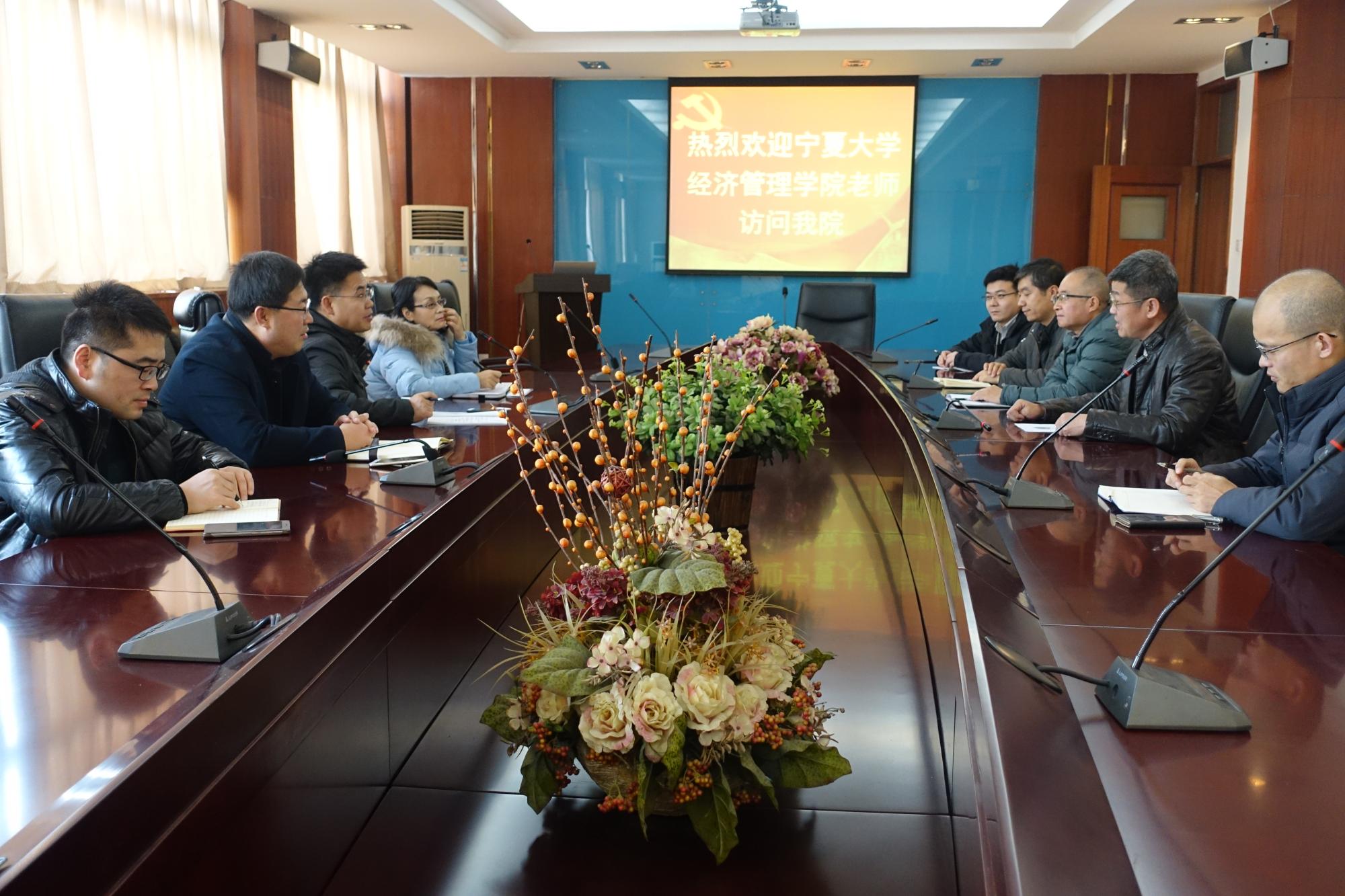 12月11日下午,宁夏大学经济管理学院院长杨国涛一行4人到访经金学院。经金学院院长孙早、副院长魏玮、学院党委副书记周建伦、院长助理温军以及青年教师刘