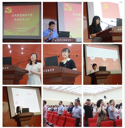 为庆祝中国共产党建党98周年,进一步深入推进创先争优活动,发挥党员先锋模范作用,全面推进创新港内涵建设和学院发展,6月26日下午,经金学院召开庆祝建党98周年暨先进表彰大会。院党委委员、全体师生党员参会,会议由院党委副书记周建伦同志主持。