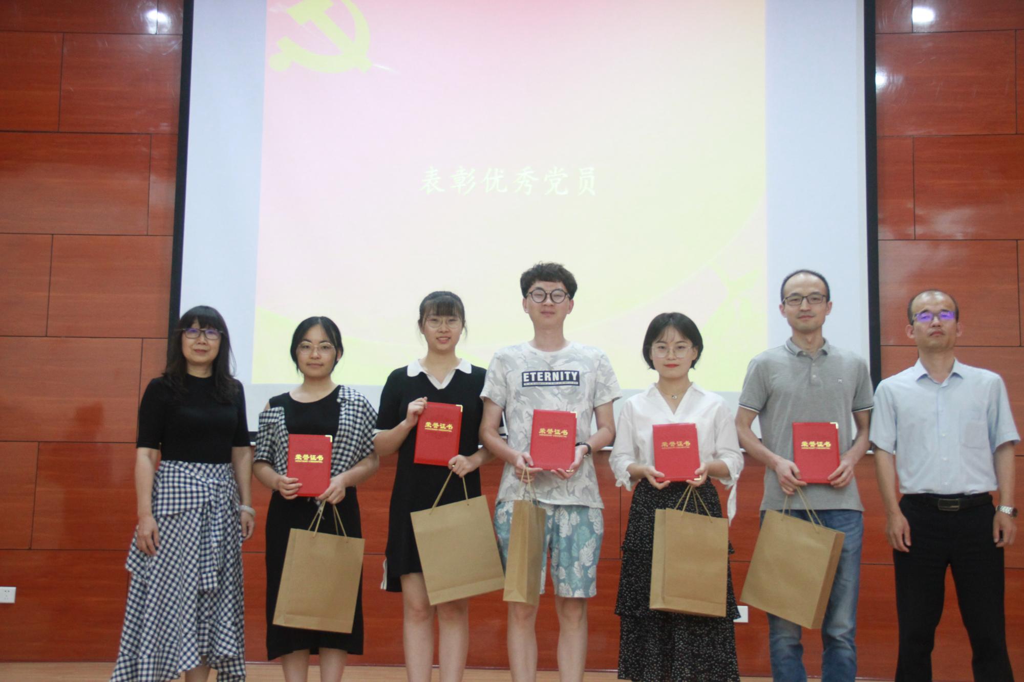 大会在庄严的国歌中拉开帷幕。全体党员面向党旗重温入党誓词。院党委书记宋丽颖同志宣读了经金学院学院党委《关于表彰2018—2019学年优秀共产党员、先进党支部的决定》,对学院一年来涌现出来在师德师风、教书育人和创新港内涵建设方面表现突出的教师党员;学业优秀,践行爱国主义、集体主义、英雄主义、乐观主义事迹突出的学生党员进行了表彰。会议共表彰优秀教工党员17名,优秀学生党员22名,先进党支部5个,与会领导为受表彰的优秀个人颁发了荣誉证书和奖品。