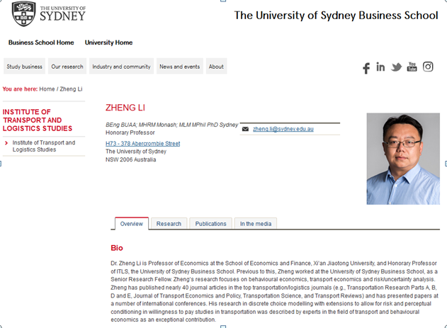 李铮教授在悉尼大学商学院的个人主页:https://business.sydney.edu.au/staff/zheng.li