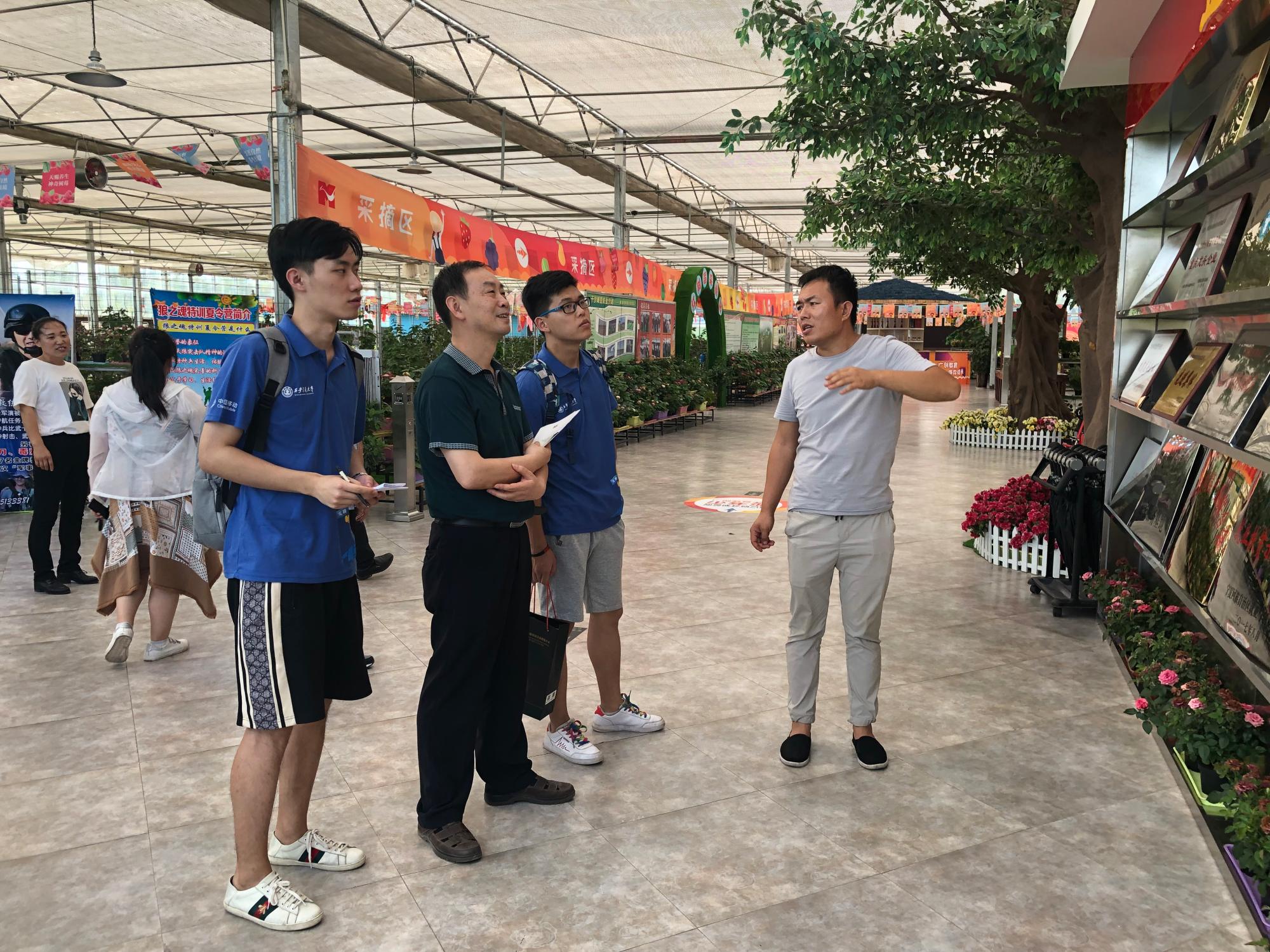 听完裴主任的介绍,王老师代表团队对裴主任在百忙之中接待团队一行表示感谢。然后双方就有关“返贫问题”、“移民搬迁的生活满意度”及产业规模等问题进行了交流。随后,在裴主任的陪同下,实践团队一行人参观了闽宁镇镇史馆及富贵兰服饰有限公司、武河千亩桃园、红酒一条街和红树莓种植基地等部分代表性的帮扶企业。