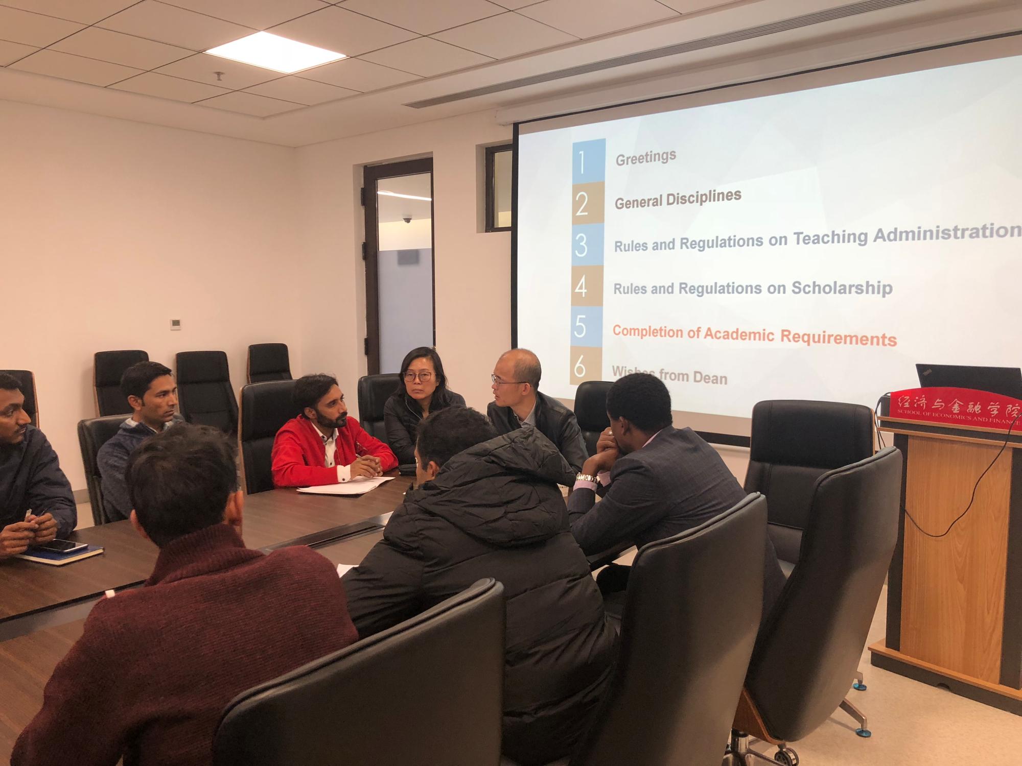 11月14日下午,经金学院在创新港涵英楼8002会议室召开2019级硕博留学生座谈会,会议由温军副院长主持。