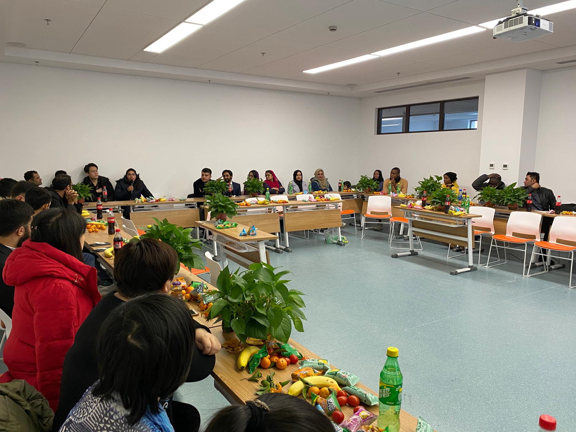 2019年12月31日,经金学院在创新港涵英楼8088会议室举办了留学生新年联欢会。国际教育学院纪婷副院长、经金学院温军副院长、杨少华老师、冯亚萍老师、刘华老师以及来自哈萨克斯坦、吉尔吉斯斯坦、巴基斯坦、埃塞俄比亚等国家的2018级、2019级留学生约60余人参加了新年联欢会。各国留学生与老师们欢聚一堂,共迎新年。