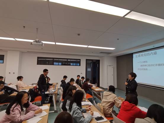 董老师是经金学院2006届硕士毕业生,通过自我介绍,作为学姐迅速和同学们拉近了距离。培训由一个小游戏展开,董老师将0-120岁作为整个生命区间,引导同学们对自己的人生做出初步规划,并分享自身的职业发展经验,向同学们讲解“生涯”的内涵。