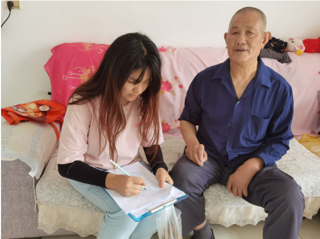 图为团队成员白天走进居民家中进行调研工作