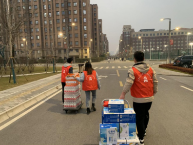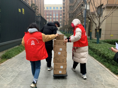 2、抗疫物资搬运与发放工作。疫情期间,经金学院创新港校区接受来自2020级MBA(苏州班)的抗疫物资捐赠,包括72箱太平梳打饼干、50箱奥利奥、400箱方便面、11000只医用口罩,其中400箱方便面转赠给了学校。陆续收到来自学校、学院、校友以及社会各方人士的物资捐赠。红色小马甲志愿者小队高效有序的为我院同学搬运并发放了口罩、消毒物品、水果、饼干等物资,使得同学们在第一时间感受到来自各方的关怀,坚定抗疫必胜的决心。