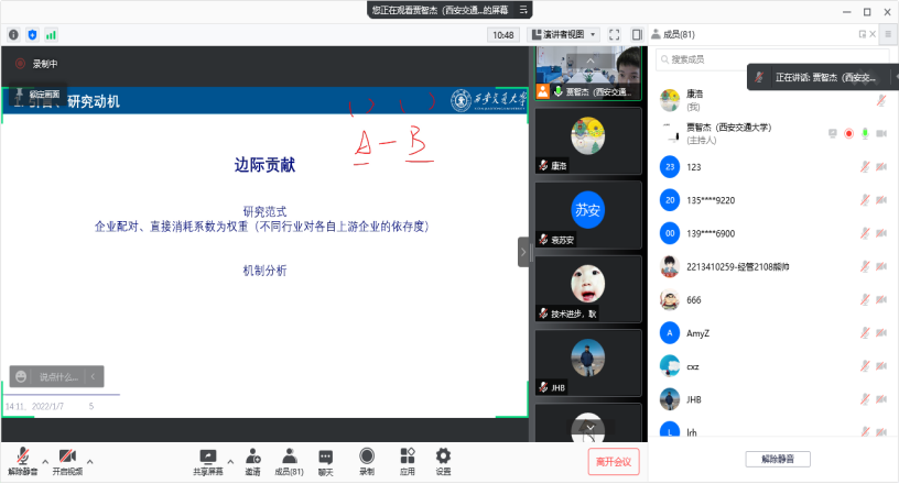 1月7日,学院经济学系贾智杰助理教授从上市公司的微观证据分析了上游国有企业与下游的经营绩效问题。分析了国企自身效率提高、规模变化和股权集中度的下降是国企对下游影响的主要原因。1月9日,哈尔滨工业大学(威海)经济管理学院副院长、博士生导师冯泰文教授基于fsQCA的组态分析,探讨了什么样的绿色创新模式产生城市高竞争力。绿色创新是实现区域经济提质增效的重要力量,而如何通过绿色创新提升城市绿色竞争力是创新领域有待回答的重要问题。