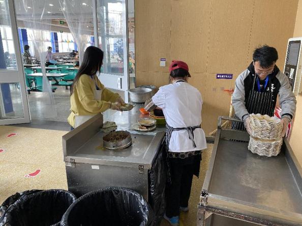本次劳动教育共分两批次开展。第一批次的同学们在雁塔校区第十五食堂和第十六食堂帮助食堂阿姨收拾擦净桌面、收回碗筷和餐盘、引导学生有序排队点餐。十位志愿者奉献意识强、团队协作精神高,顺利完成了中午的食堂卫生清理工作。