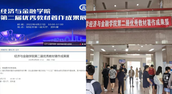 2022年4月27日,西安交通大学经济与金融学院第二届优秀教材著作成果展在财经主楼1层大厅、资料室成功举办。