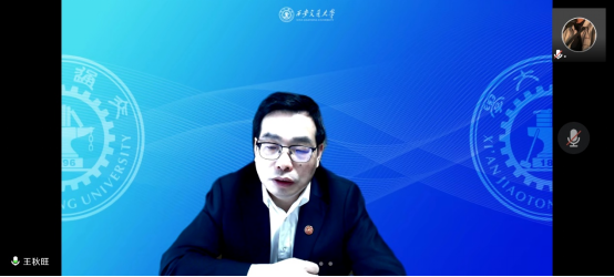 王秋旺教授在随后的致辞中表示学校会大力支持电子商务虚拟教研室的建设工作,并欢迎各位老师在疫情形势好转后来到西安交通大学参观交流。
