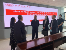 5月11日,为了推动榆林金融研究院的发展,榆林市地方金融局王志武局长一行到访经济金融研究院,就下一步课题研究推进与培训事宜进行了座谈。榆林市地方金融工作局王志武局长、朱晓媛副局长、党组成员白兴文、王珏科长、薛瑞祺科长陪同调研。经济与金融学院党委书记宋丽颖、李倩教授、院实验中心副主任李淑彪副教授、院校友办任小静主任、科研秘书康洛参加座谈会。宋丽颖书记主持座谈会。
