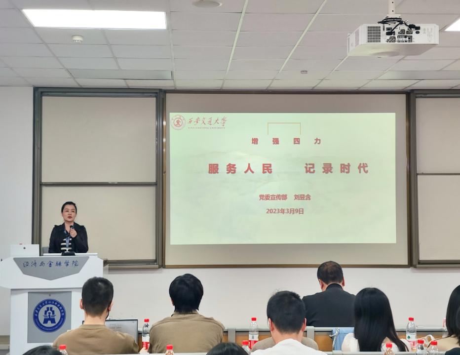 3月9日下午,经金学院党委举办新闻宣传及公文写作专题培训讲座,邀请党委宣传部新闻主管刘昱含和党校办文秘主管翟亮智为师生作专题辅导。组织员、院团委书记董娜主持培训,学院党委副书记周建伦到会并讲话。学院行政管理老师、学生团支部书记、研会及社团干部等近百人参加培训。