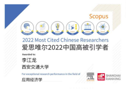 近日,爱思唯尔(Elsevier)发布2022年中国高被引学者(2022 Most Cited Chinese Researchers)榜单,我院李江龙教授再次入选应用经济学领域中国高被引学者。
