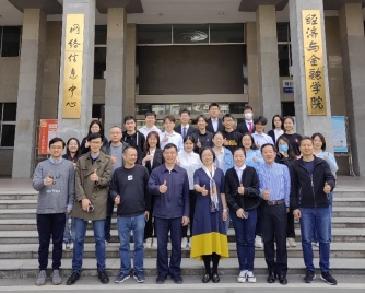 开赛仪式结束后,全体评审专家及参赛团队在经济与金融学院财经主楼前合影留念。