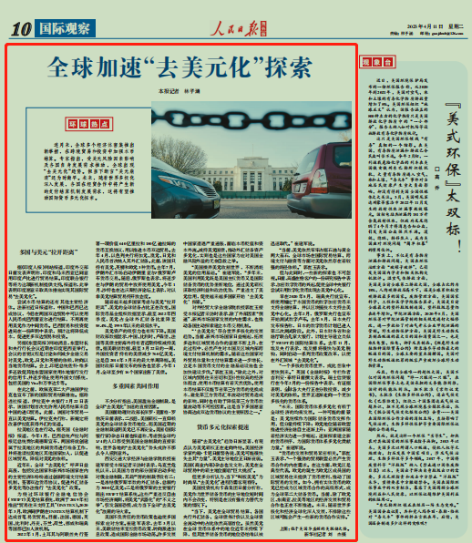4月11日,西安交通大学经济与金融学院崔建军教授接受了《人民日报》(海外版)的采访,分享了全球加速“去美元化”的看法。