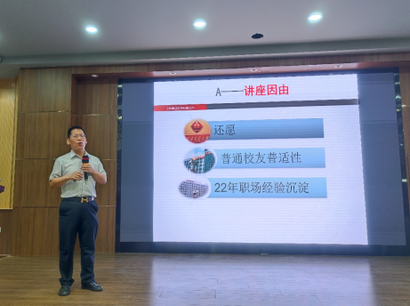 鲁向前校友结合自身学习工作经历,深情回顾了母校老师在他学生时期的殷殷嘱托和拳拳期待。他强调“养成大拙方为巧,学到如愚始见奇”,对师弟师妹们的职业生涯规划提供了务实进取接地气的方法和建议,帮助学生学习从校园到职场思维模式的转换。最后,他以希望和信念收尾,让信念的力量推动行为,伴我们克服艰难困苦,带着希望走向未来。