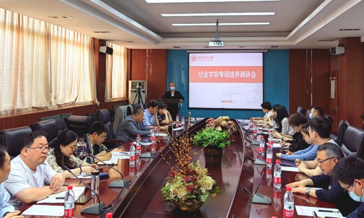 2023年5月30日下午,经金学院专硕培养调研会在财经主楼806会议室召开,学院党委书记周建伦、副院长温军、全国金融专业学位研究生教育指导委员会委员崔建军、全国应用统计专业学位研究生教育指导委员会委员严明义、各专业硕士点负责人及教师代表、研究生辅导员、专硕学生代表等出席会议。会议由温军副院长主持。