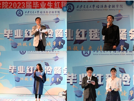 骊歌未央、待续华章!2023年5月31日,西安交通大学经济与金融学院2023届毕业生红毯秀暨冷餐会在创新港校区阅览中心二楼圆满举办。西安交通大学党委副书记、经济与金融学院院长孙早、校党委研工部部长薛周利、校团委副书记毕晓楠、经金学院党委书记周建伦、副院长沈灏和赵春艳到场出席,学院老师及全体毕业生共同参加了本次活动。