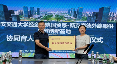 为落实中国—中亚峰会精神,推动学院人才培养质量提升,2023年7月3日,学院在国际港务区招商局丝路中心举行了西安交通大学校外实践教育基地授牌暨国贸001班实习启动仪式。学院国贸系主任王增涛教授、副主任闫奕荣副教授,指导教师姚芳博士以及国贸(国际班)001全体学生,西安国际港务区管委会投资促进局局长助理袁方,陕西斯克赛德贸融通国际供应链有限公司西安负责人任静及公司相关人员出席活动。仪式由陕西斯克赛德贸融通国际供应链有限公司刘珂华主持。