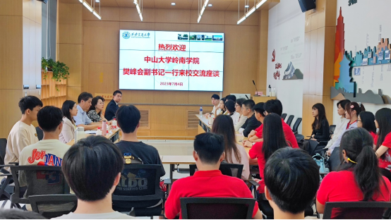 7月4日上午,中山大学岭南学院樊峰会副书记师生一行30余人来校交流。经金学院党委书记周建伦、校学生处副处长张丹、启德书院院务副主任李华及经金学院研究生辅导员王平出席接待并参加交流座谈。座谈会由周建伦书记主持。