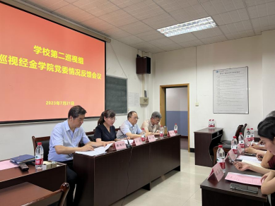 7月21日下午,经金学院党委召开校党委巡视组巡视情况反馈会。学校党委常委、副校长柴渭,校党委第二巡视组组长颜莉,巡视办主任杨小渭、组织部副部长詹敬芳、纪委纪检监察机构办公室副主任郝亚楠、巡视办主管耿嘉敏,经金学院领导班子,党委委员,系主任、支部书记等中层干部以及教职工代表参加会议。院党委书记周建伦主持会议。