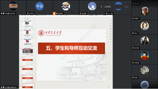 2023级研究生逐个介绍了自己的基本情况。师生开展互动交流,大家就职业规划、就业前景、课程选择、实习安排、硕博贯通、生活服务等展开热烈交流。此次见面会虽因突降暴雨而由线下转线上举行,但依然达到了预期的效果,使2023级研究生对本专业的学科发展和培养模式有了清晰的认识。同学们明确了未来努力的方向,得到了导师们的中肯建议,同时也对自己的发展前景更有信心,相信他们在未来三年研究生生活中会取得丰硕的成果。