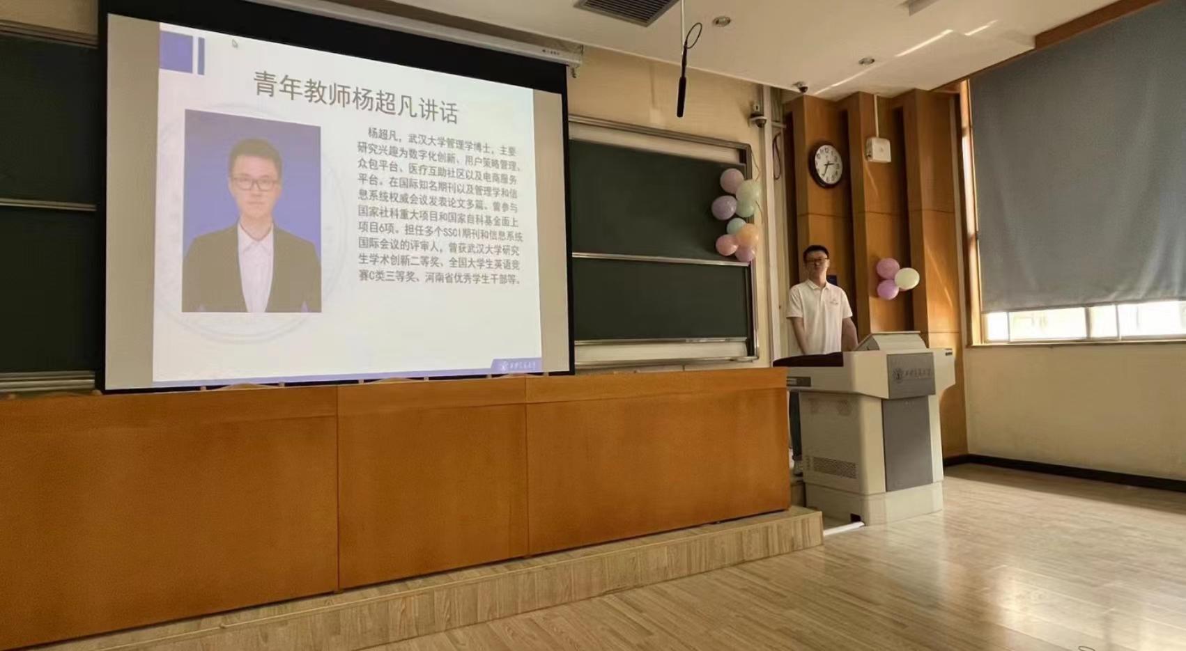 杨老师希望同学们在本科阶段多参加各类比赛以及科研活动,提高综合能力,为将来就业和研究生求学做好准备。王维老师介绍了理科生选择经管类专业的一些体会,分享了自己对于各学科的认识,介绍了什么是社会科学、什么是经济学和电子商务,并结合自己研究,介绍了知识,学习,研究之间的关系。