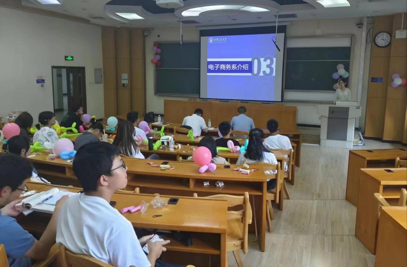 为了让同学们尽快适应大学生活,了解本专业培养特色,为未来发展打下良好基础,杨超凡和王维两位老师结合自己的成长经历和学术研究向大家介绍了电子商务专业的历史、发展前景和前沿应用。