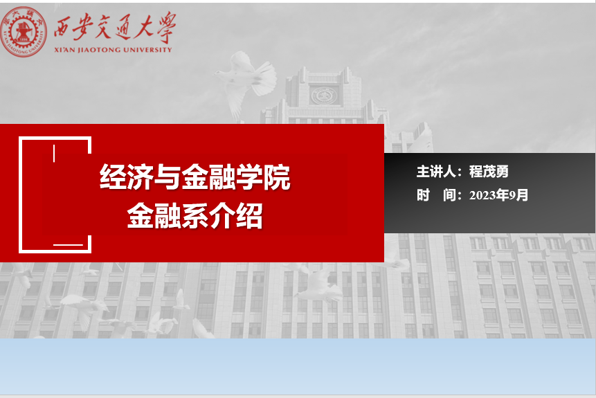 程茂勇老师从基本信息、师资队伍、优秀校友以及研究生毕业去向几个方面对金融系情况进行全面介绍。