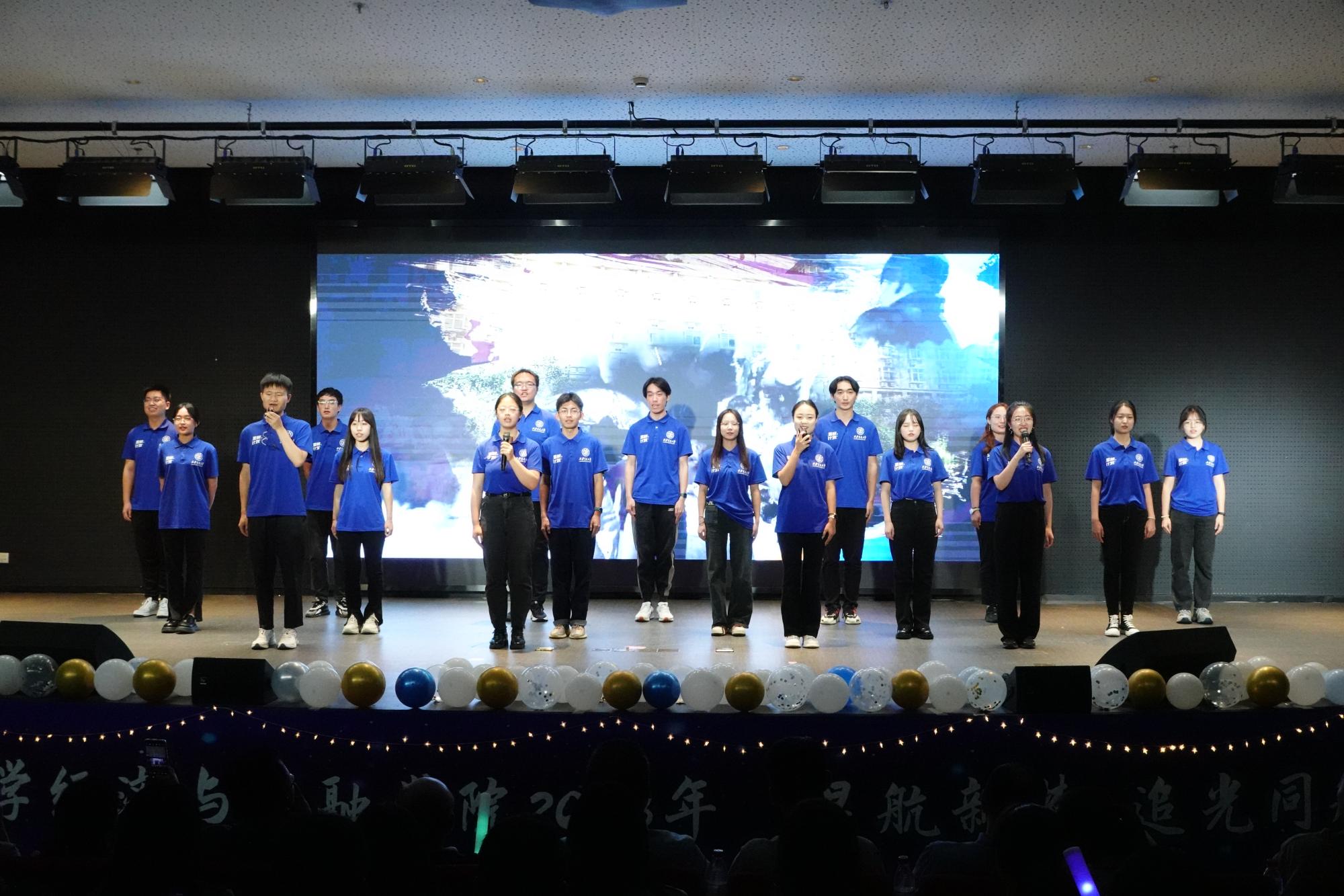 晚会在情景剧《星航日记》的演出中拉开帷幕。《星航日记》记录了星航班、星航训练营及星航计划同学们的日常生活,牢牢把握“学思想、强党性、重实践、建新功”总体要求,展现经金学子在学术科研、调研实践、服务社会发展等方面发光发热、奋勇向前的坚定信念。“为明日之光,为世界之光”响亮的誓词激起了全场阵阵欢呼,瞬间点燃经金人“爱校荣校”的深厚情感。