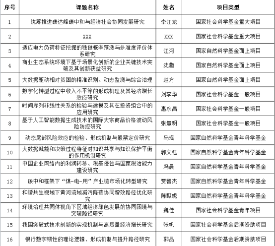 国家自然科学基金委员会、国家哲学社会科学办公室先后发布了2023年度立项名单,经济与金融学院教师分别获准主持2项国家社科基金重大项目、8项国家自然科学基金项目以、4项国家哲学社会科学基金项目及2项国家社科基金后期资助项。学院特向各位获准立项的老师表示祝贺,希望全体教师艰难知勇毅,磨砺得玉成,奋进新征程、建功新时代!