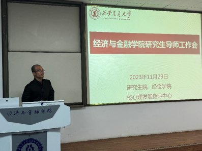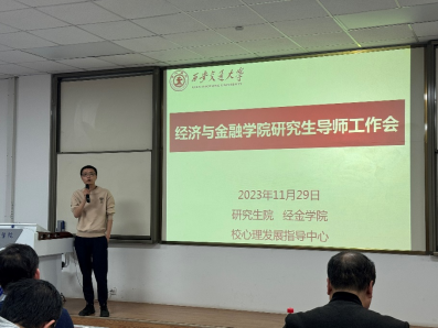 为了全面落实研究生导师立德树人根本任务,强化研究生导师思政工作能力,践行组织育人要求、汇聚育人合力,经金学院于11月29日下午召开研究生导师工作会。校党委研工部部长、研究生院副院长薛周利,学生心理发展指导中心、咨询中心主任姚斌,学院党委书记周建伦,学院研究生导师以及辅导员参加会议。会议由温军副院长主持。