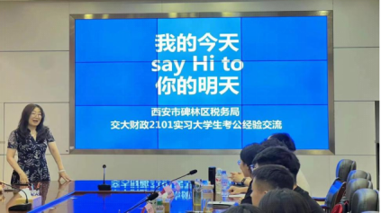 在2024年盛夏之际,经济与金融学院财政系精心组织学生赴国家税务总局碑林区税务局开展了为期一个月的生产实习。7月12日下午,“我的今天say Hi to你的明天”考公经验交流会暨2021级财政专业集中生产实习总结大会在税务局顺利举行。经济与金融学院财政系带队教师宋丽颖教授、刘华老师、碑林税务局新录用公务员,以及全体实习学生共同参加了此次大会。会议由国家税务总局碑林区税务局人教科禹洋科长主持。