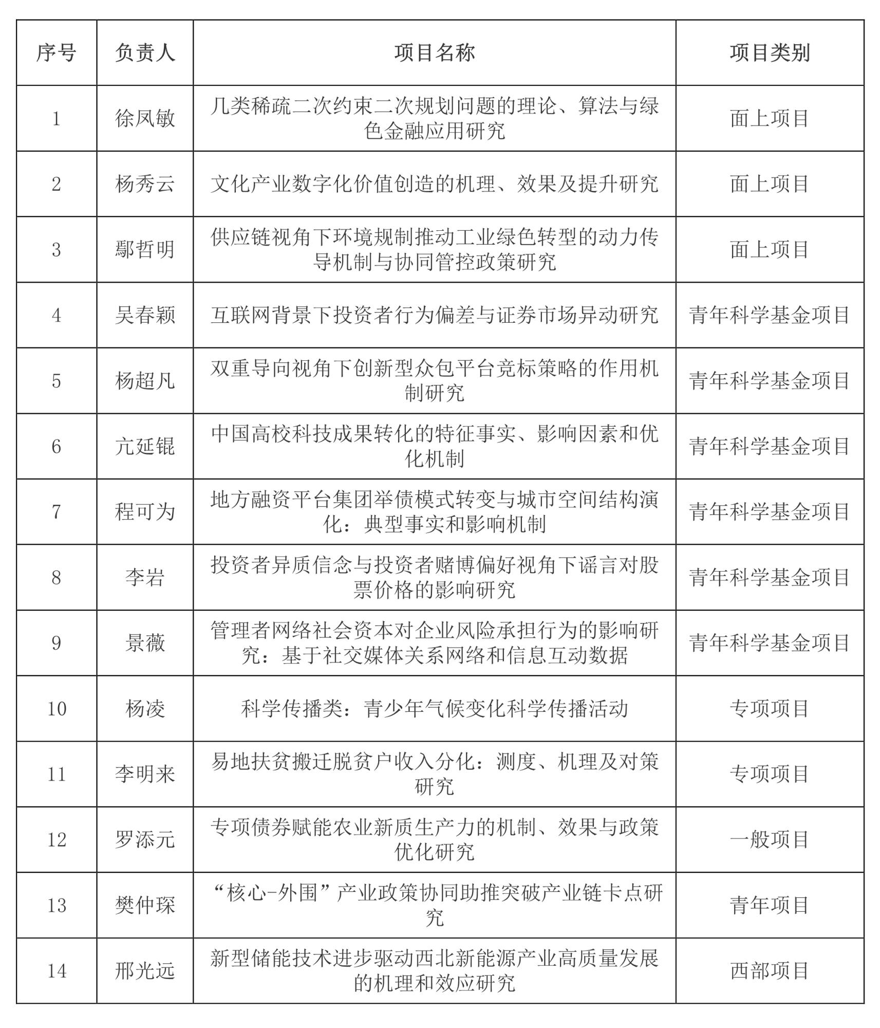 近日,国家自然科学基金委员会、全国哲学社会科学工作办公室,公布了2024年国家自然科学基金、国家社会科学基金年度项目集中接收申请项目评审结果,经济与金融学院分别有11个项目获得国家自然科学基金项目资助立项,其中面上项目3项,青年项目6项,传播类专项项目1项,青年学生基础研究项目(博士研究生)1项;共有3个项目获得国家社会科学基金项目资助立项,其中青年项目1项,一般项目1项,西部项目1项。截至目前,学院2024年度累计获批国家级科研项目立项14项,同比国家自然科学基金项目数量及类型取得新突破。