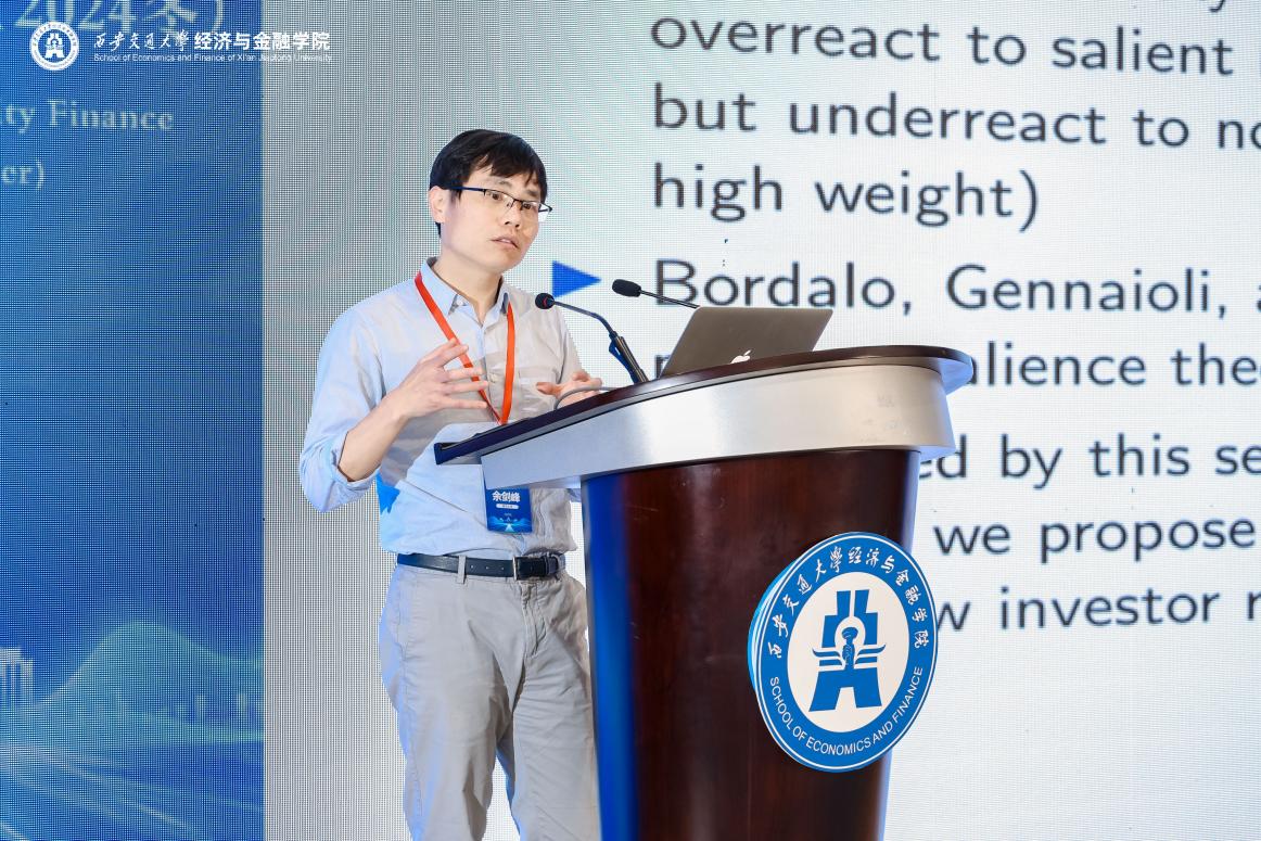 主旨报告环节由西安交通大学经济与金融学院副院长沈灏教授主持,邀请了两位重量级嘉宾,清华大学五道口金融学院余剑峰教授进行了Salience and Short-term Momentum and Reversals的主旨报告,探讨了凸显性理论与短期动量和反转之间的关系,研究发现高凸显性股票表现出短期反转,而低凸显性股票表现出短期动量。上海交通大学安泰经济与管理学院凃浚教授进行了Long-term early warning information on corporate defaults from news headlines的主题报告,分析了新闻标题在中国市场上预测公司债券发行人首次违约的信息价值和预测能力,并与参会者进行了深入探讨。