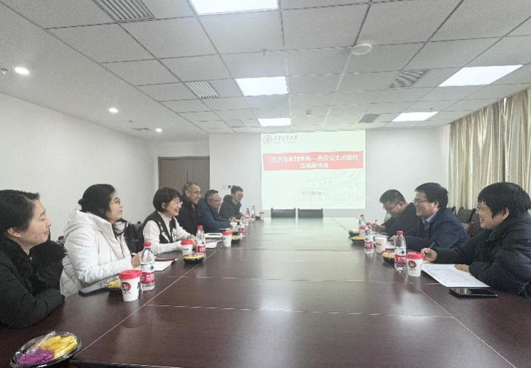 2025年1月7日下午,经济与金融学院会同西安交通大学出版社在兴庆校区南一楼18层会议室开展交流座谈。西安交通大学出版社副总编辑、副总经理秦茂盛,出版社经管分社主任王建洪、编辑史菲菲,经济与金融学院副院长赵春艳及学院各专业规划教材负责教师参加座谈。