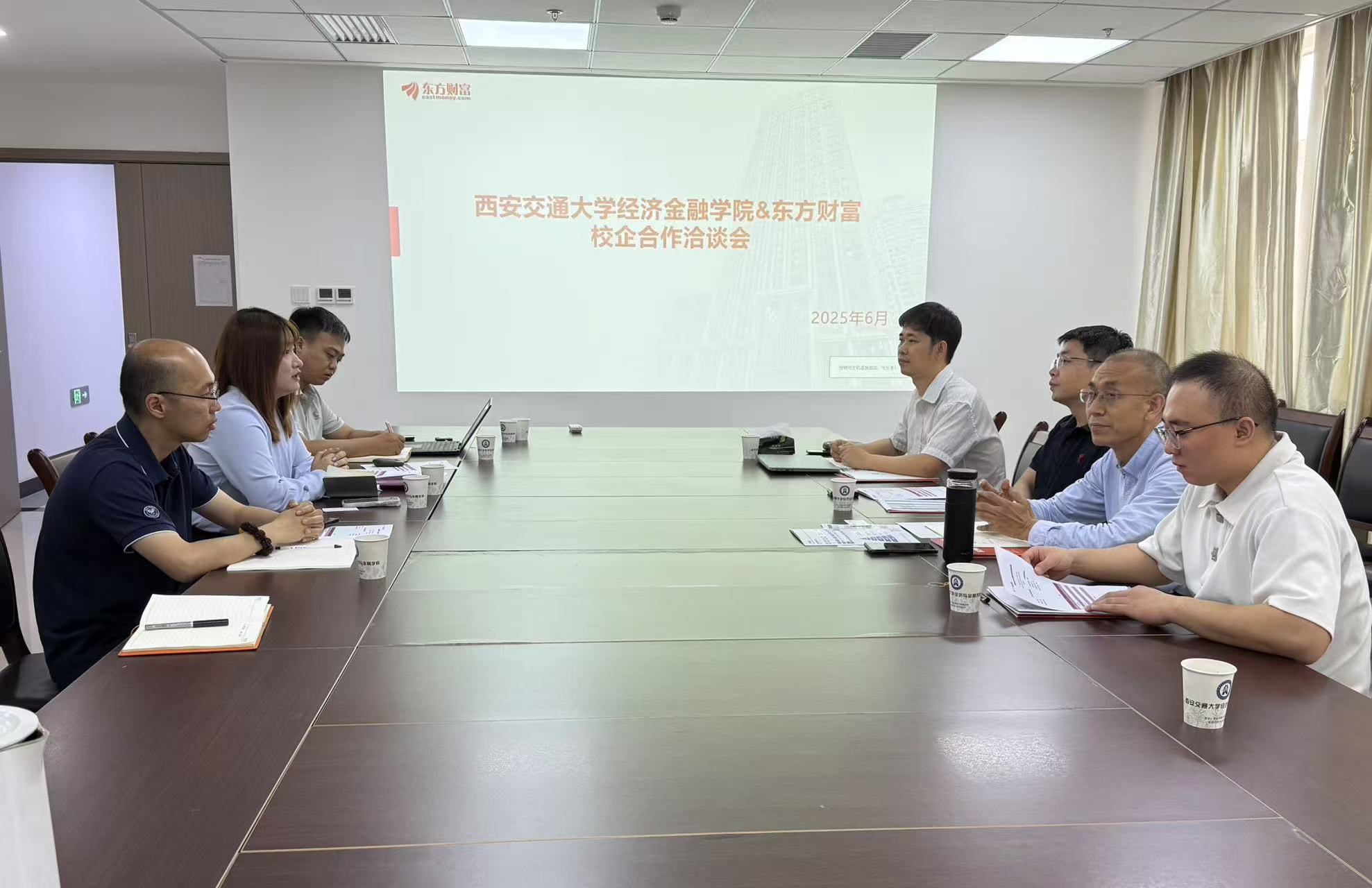 6月19日上午,东方财富信息股份有限公司市场部全国高校负责人李佩君率队访问西安交通大学经济与金融学院,东方财富人工智能研究院专家张恺、市场部高校西北地区负责人李博伟、席倩倩一同到访。学院副院长沈灏、实验室主任李淑彪、金融科技系支部书记董志龙、教师李岩参加座谈。