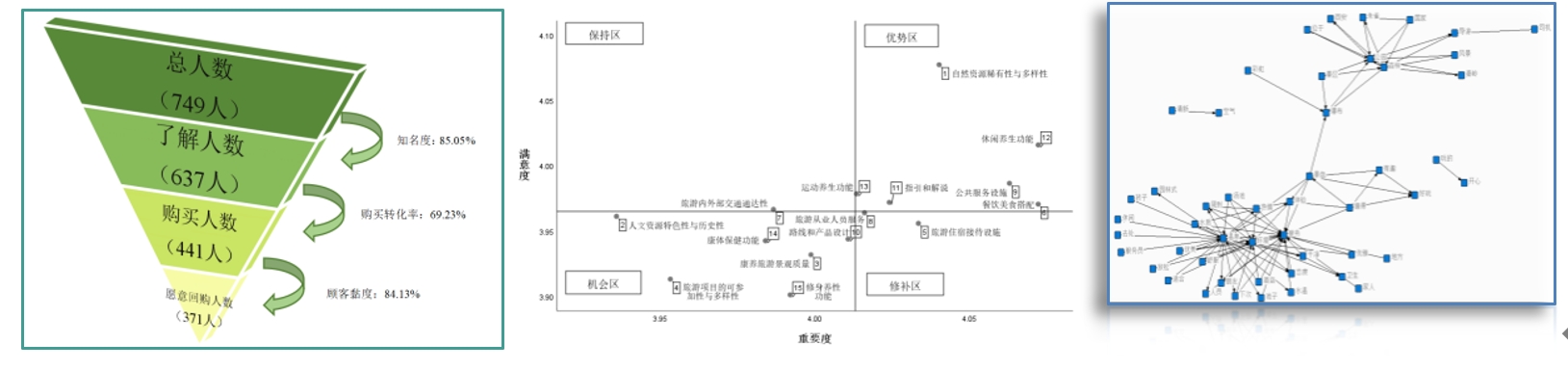 在问卷数据的处理过程中,实践团队综合运用了漏斗模型分析、IPA分析、二元Logistic回归模型、结构方程模型以及线上评论数据挖掘等多种方法。