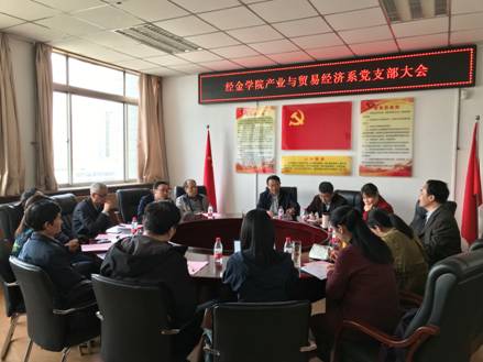 3月28日下午,经金学院产业与贸易经济系支部生活会在财经主楼“党员之家”举行,校党委常委席光副校长应邀参加会议。会议由产业与贸易经济系支部书记宋林主持。经金学院院长孙早、校党委组织部杨夫腾老师列席会议。