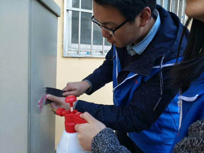 首先,9146党支部成员乘坐校车到达西安交通大学兴庆校区,之后,支部成员乘坐公交到达经九路社区。在社区相关负责人的带领下,支部成员被分成了四个小组,每个小组四人。一些同学负责楼层的小广告清理工作以及楼道卫生清扫工作,其他同学负责清理社区的公告栏,还有的同学根据实际情况和社区居委会的意愿做一些力所能及的事。大家在社区负责人的帮助下对社区进行了清理和美化,劳动过程中,党员们充分展现了不怕脏、不怕苦、不怕累,敢于冲在前面、敢于抢挑重担的精神风貌。每个党员都尽职尽责完成自己的工作,配合默契,清理小广告的支部成员用小铲子清除墙上和门上的广告,合作的人则及时喷水或是清理地上遗留下来的垃圾。经过三个小时的辛苦工作,社区看上去干净了许多,社区负责人对我们提出了好评,并给予感谢。
