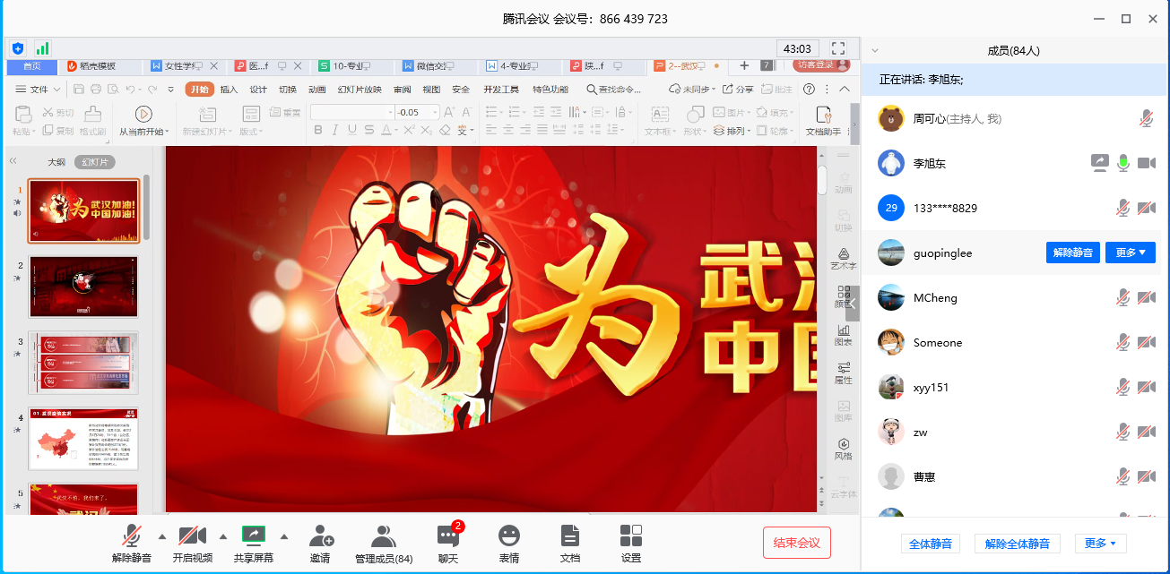 为弘扬抗疫精神,传播正能量,加强党员理想信念教育,践行初心使命,激发广大党员同志的责任与担当意识。4月27日20:00,经金学院党委邀请了国家援鄂医疗队队员、交大第一附属医院李旭东老师讲授“抗疫力量”专题云党课,分享抗疫故事,共计80余名教工党员同志通过腾讯会议形式进行了讨论学习,会议由学院党委书记宋丽颖主持。